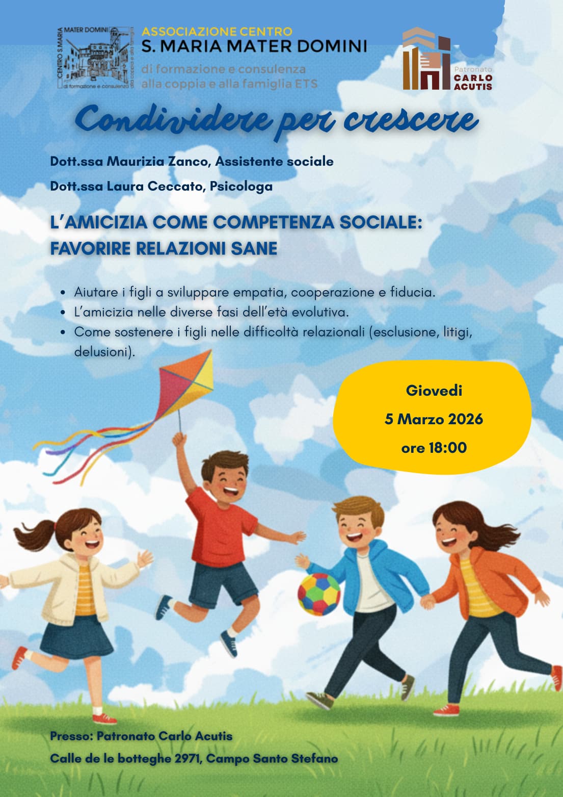 – Condividere per crescere … prossimo appuntamento giovedì 6 marzo, ore 18