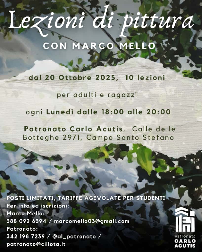 – il corso di pittura per ragazzi e adulti, tenuto Marco Mello – studente dell’Accademia di Belle Arti di Venezia