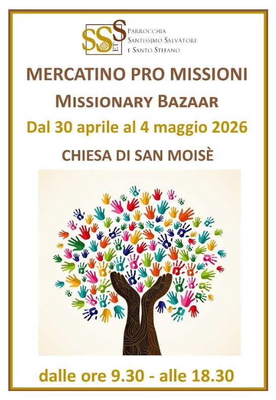 Ritorna dal 30 aprile al 4 maggio 2026 presso la Chiesa di San Moisè il Mercatino Pro Missioni dalle 9:30 alle 18:30.