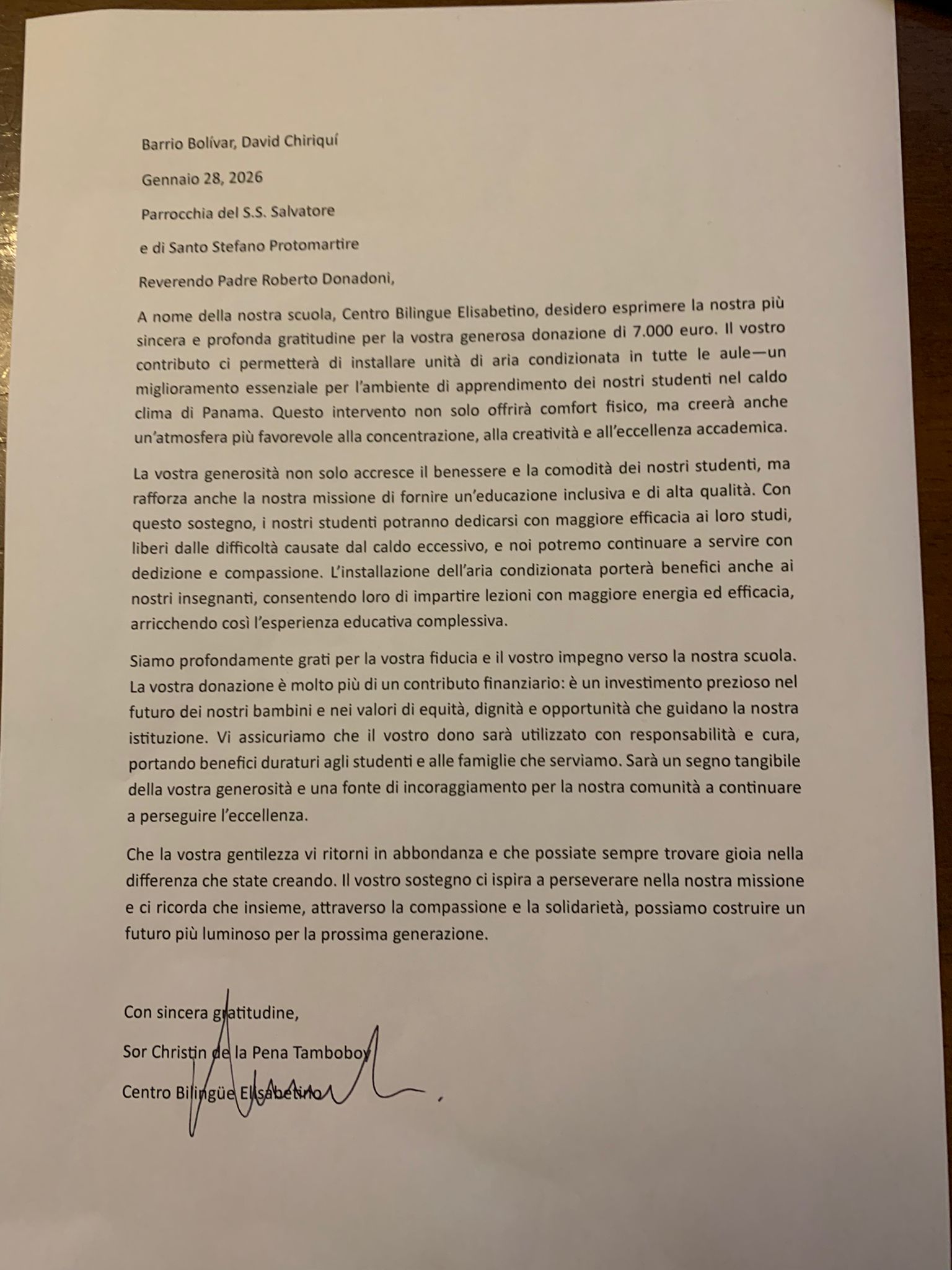 Pubblicati sotto alcuni ringraziamenti delle donazioni effettuate dalla nostra Parrocchia.