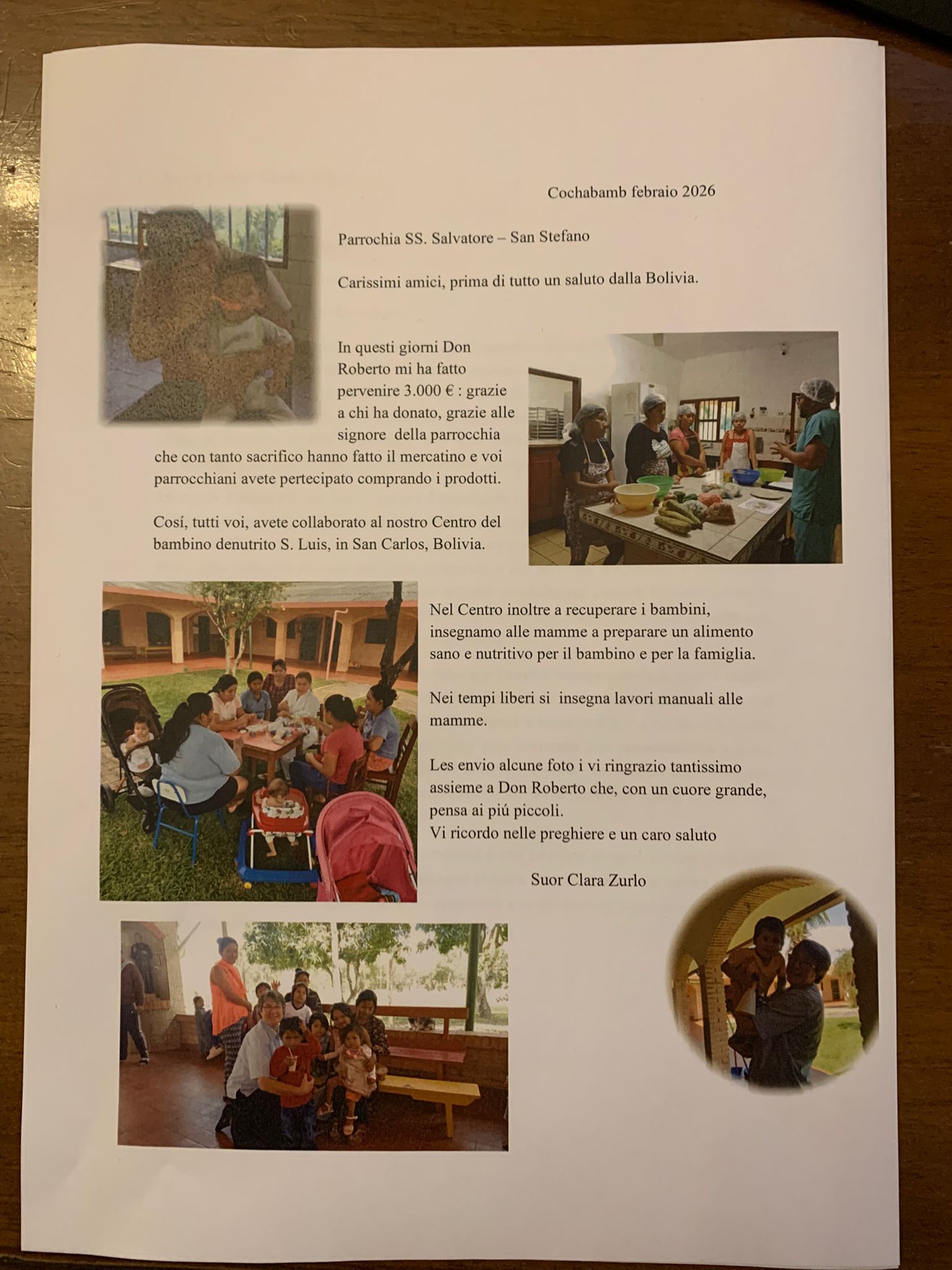 come vi avevo promesso, dopo aver consultato il Consiglio Pastorale, i volontari e i vari organismi della parrocchia, desidero ora comunicarvi con chiarezza la destinazione concreta dei fondi che la nostra comunità ha raccolto e mi avete affidato, a sostegno del territorio e dei bisogni nel mondo.
