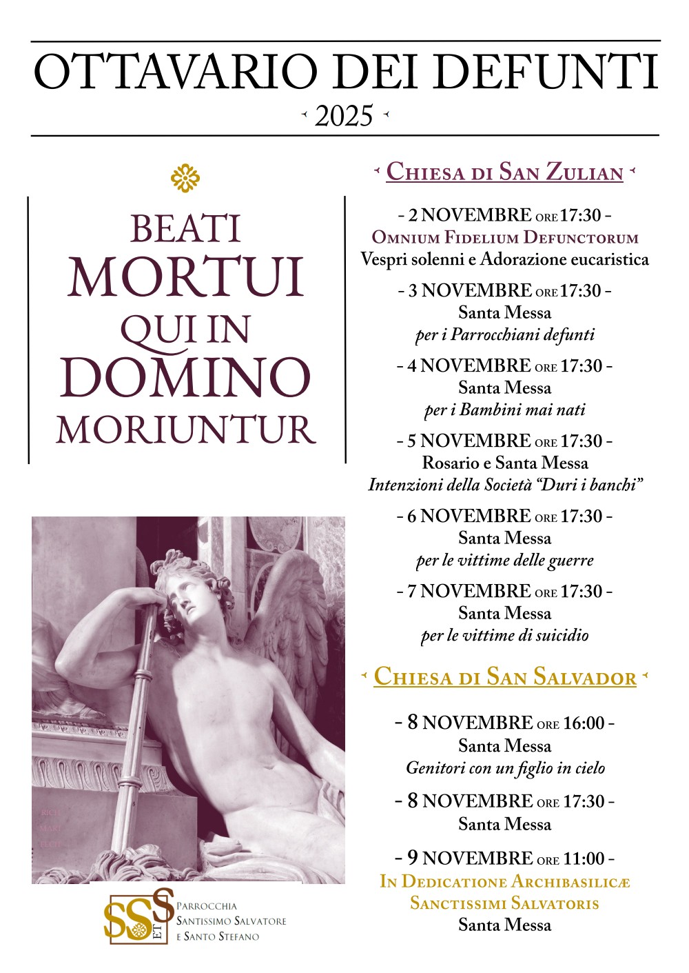 Di seguito le locandine con tutti i dettagli delle celebrazioni del 1° novembre e dell’ottavario dei defunti